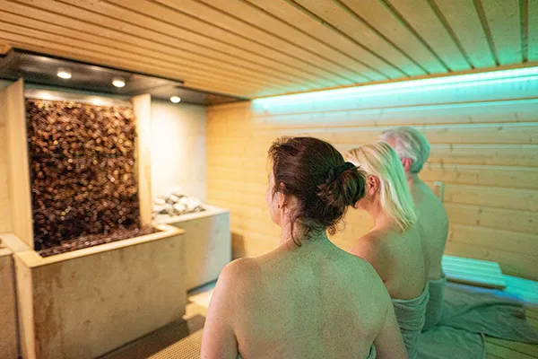 Unsere Salzsauna ist als gemütliche Klönsauna gestaltet und verbindet angenehme Wärme mit einer wohltuenden salzhaltigen Luft. Bei entspannten Klängen und dem sanften Plätschern des Gradierwerks mit hochwertiger Himalaya-Sole entsteht eine beruhigende Atmosphäre, in der Gespräche ausdrücklich erlaubt und willkommen sind. Während Sie die gleichmäßige Wärme genießen, liegt feiner Salznebel in der Luft, der sich nach und nach als leichte Salzkruste auf Haut und Lippen absetzt und so das natürliche Hautbild pflegt. Die milden fünfundsiebzig Grad und die ruhige Stimmung machen die Salzsauna zu einem idealen Ort für nette Gespräche, entspanntes Durchatmen und ein rundum wohltuendes Saunaerlebnis.
